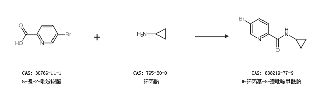 2.通过5-溴-2-吡啶羧酸和环丙胺合成N-环丙基-5-溴吡啶甲酰胺