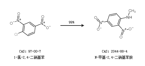 1.通过1-氯-2,4-二硝基苯合成N-甲基-2,4-二硝基苯胺,收率约99%;