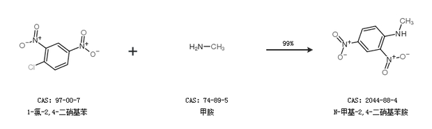 2.通过1-氯-2,4-二硝基苯和甲胺合成N-甲基-2,4-二硝基苯胺,收率约99%;