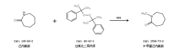 2.通过己内酰胺和过氧化二异丙苯合成N-甲基己内酰胺,收率约88%;