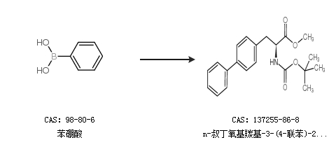 1.通过苯硼酸合成n-叔丁氧基羰基-3-(4-联苯)-2-氨基丙酸-(S)-甲酯,收率约95%;