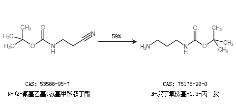 1.通过N-(2-氰基乙基)氨基甲酸叔丁酯合成N-叔丁氧羰基-1,3-丙二胺,收率约59%;