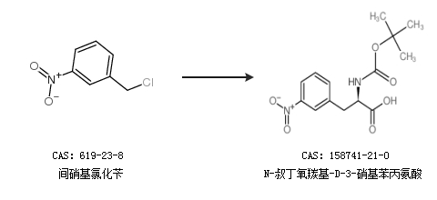 1.通过间硝基氯化苄合成N-叔丁氧羰基-D-3-硝基苯丙氨酸