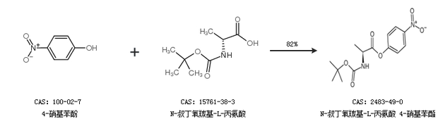 1.通过4-硝基苯酚和N-叔丁氧羰基-L-丙氨酸合成N-叔丁氧羰基-L-丙氨酸 4-硝基苯酯,收率约82%;