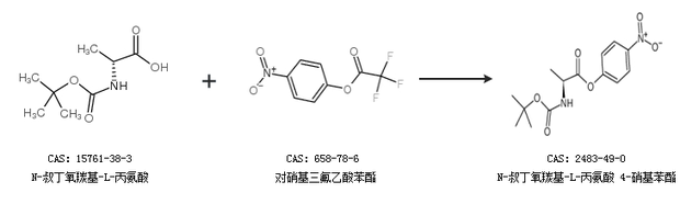 2.通过N-叔丁氧羰基-L-丙氨酸和对硝基三氟乙酸苯酯合成N-叔丁氧羰基-L-丙氨酸 4-硝基苯酯