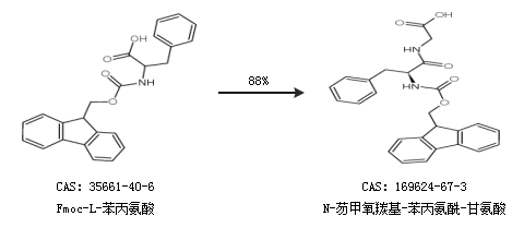 1.通过Fmoc-L-苯丙氨酸合成N-芴甲氧羰基-苯丙氨酰-甘氨酸,收率约88%;