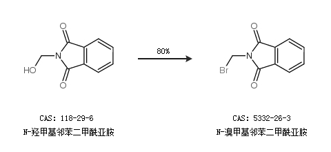 1.通过N-羟甲基邻苯二甲酰亚胺合成N-溴甲基邻苯二甲酰亚胺,收率约80%;