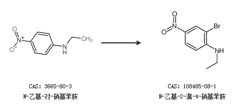 1.通过N-乙基-对-硝基苯胺合成N-乙基-2-溴-4-硝基苯胺