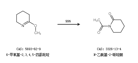 2.通过6-甲氧基-2,3,4,5-四氢吡啶合成N-乙酰基-2-哌啶酮,收率约99%;
