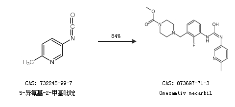1.通过5-异氰基-2-甲基吡啶合成Omecamtiv mecarbil,收率约84%;