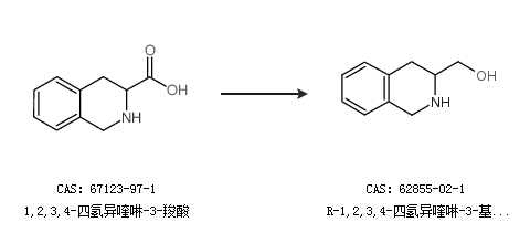 中文别名 D-1,2,3,4-四氢异喹啉-3-甲醇;(R)-(+)-1,2,3,4-四氢-3-异喹啉甲醇;(R)-(1,2,3,4-四氢异喹啉-3-基)-甲醇;(3R)-1,2,3,4-四氢异喹啉-3-甲醇;