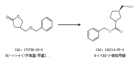 2.通过(R)-(-)-4-[(苄氧基)甲基]-二氢呋喃-2-酮合成R-1-CBZ-3-哌啶甲醇