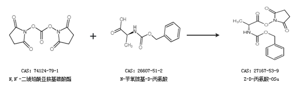 中文别名 苄氧羰基-D-丙氨酸N-羟基琥珀酰亚胺酯;N-苄氧羰基-D-丙氨酸-2,5-二氧代-1-吡咯烷酯;