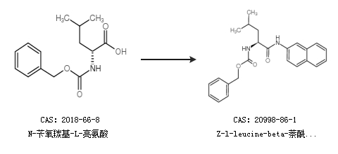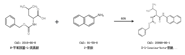1.通过N-苄氧羰基-L-亮氨酸和2-萘胺合成Z-l-leucine-beta-萘酰胺水合物,收率约60%;