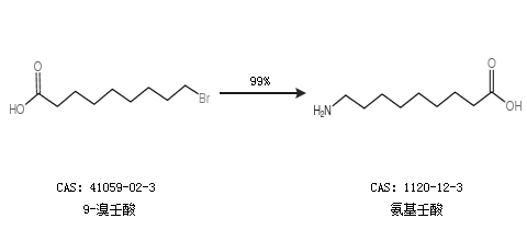 1.通过9-溴壬酸合成氨基壬酸,收率约99%;