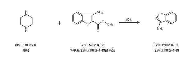 1.通过哌嗪和3-氨基苯并[b]噻吩-2-羧酸甲酯合成苯并[b]噻吩-3-胺,收率约80%;