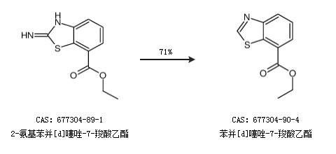 1.通过2-氨基苯并[d]噻唑-7-羧酸乙酯合成苯并[d]噻唑-7-羧酸乙酯,收率约71%;