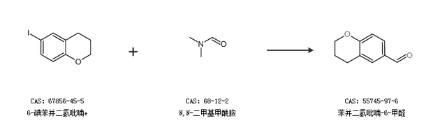1.通过6-碘苯并二氢吡喃e和N,N-二甲基甲酰胺合成苯并二氢吡喃-6-甲醛
