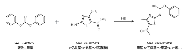 1.通过碳酸二苯酯和5-乙酰基-2-氨基-4-甲基噻唑合成苯基 5-乙酰基-4-甲基-1,3-噻唑-2-基氨基甲酸酯,收率约84%;
