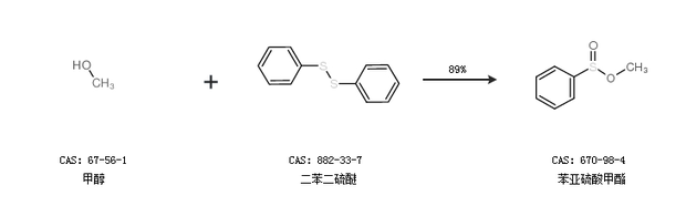 2.通过甲醇和二苯二硫醚合成苯亚硫酸甲酯,收率约89%;