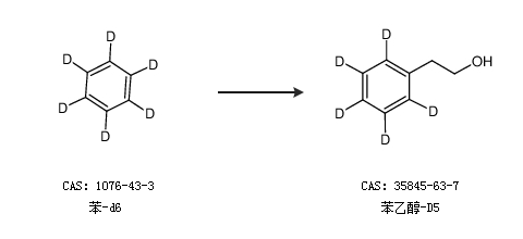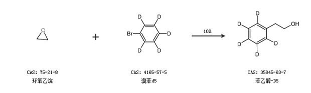 1.通过环氧乙烷和溴苯d5合成苯乙醇-D5,收率约10%;
