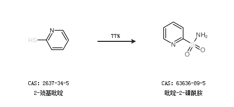1.通过2-巯基吡啶合成吡啶-2-磺酰胺,收率约77%;