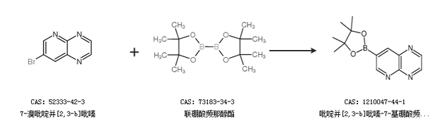 1.通过7-溴吡啶并[2,3-b]吡嗪和联硼酸频那醇酯合成吡啶并[2,3-b]吡嗪-7-基硼酸频那醇酯