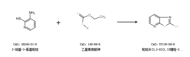 1.通过2-溴-3-氨基吡啶和乙基黄原酸钾合成吡啶并[3,2-D][1,3]噻唑-2-硫醇,收率约95%;
