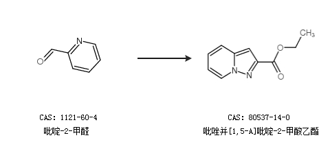 1.通过吡啶-2-甲醛合成吡唑并[1,5-A]吡啶-2-甲酸乙酯