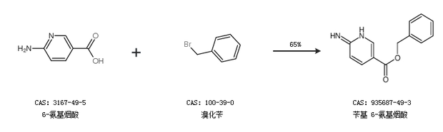 1.通过6-氨基烟酸和溴化苄合成苄基 6-氨基烟酸,收率约65%;