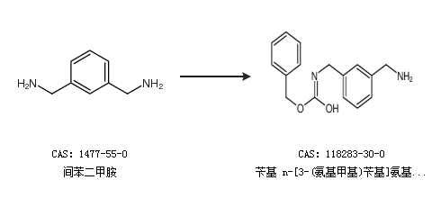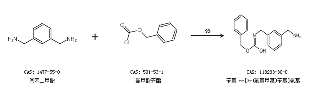 1.通过间苯二甲胺和氯甲酸苄酯合成苄基 n-[3-(氨基甲基)苄基]氨基甲酸酯,收率约9%;