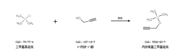 1.通过三甲基氯硅烷和2-丙炔-1-醇合成丙炔氧基三甲基硅烷,收率约98%;