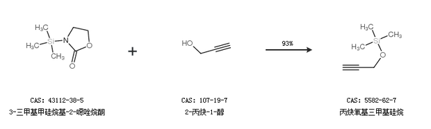 2.通过3-三甲基甲硅烷基-2-噁唑烷酮和2-丙炔-1-醇合成丙炔氧基三甲基硅烷,收率约93%;