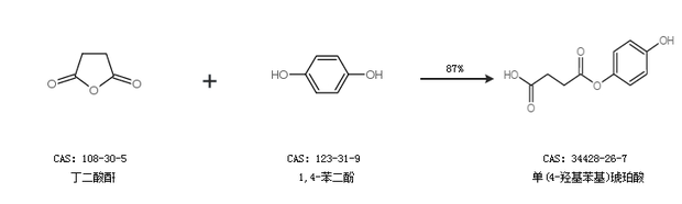 1.通过丁二酸酐和1,4-苯二酚合成单(4-羟基苯基)琥珀酸,收率约87%;