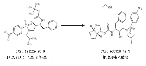 2.通过[(1S,2R)-1-苄基-2-羟基-3-[异丁基[(4-硝基苯基)磺酰]氨基]丙基]氨基甲酸叔丁酯合成地瑞那韦乙醇盐