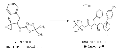 1.通过(1S)-1-(2R)-环氧乙基-2-苯乙基氨基甲酸叔丁酯合成地瑞那韦乙醇盐