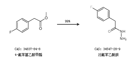 1.通过4-氟苯基乙酸甲酯合成对氟苯乙酰肼,收率约99%;