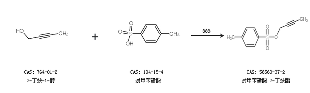 2.通过2-丁炔-1-醇和对甲苯磺酸合成对甲苯磺酸 2-丁炔酯,收率约88%;