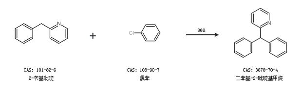 1.通过2-苄基吡啶和氯苯合成二苯基-2-吡啶基甲烷,收率约86%;