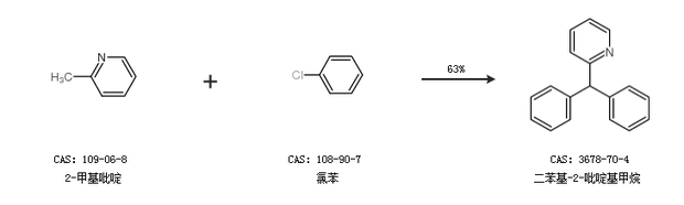 2.通过2-甲基吡啶和氯苯合成二苯基-2-吡啶基甲烷,收率约63%;