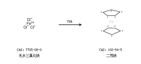 1.通过无水三氯化铁合成二茂铁,收率约79%;