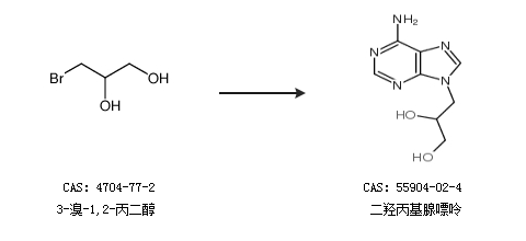 1.通过3-溴-1,2-丙二醇合成二羟丙基腺嘌呤