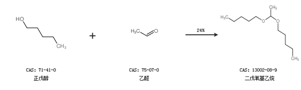 2.通过正戊醇和乙醛合成二戊氧基乙烷,收率约24%;