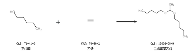 1.通过正戊醇和乙炔合成二戊氧基乙烷