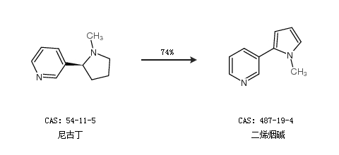 1.通过尼古丁合成二烯烟碱,收率约74%;