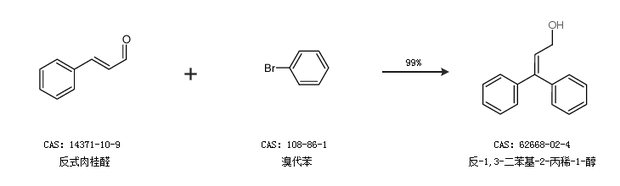 2.通过反式肉桂醛和溴代苯合成反-1,3-二苯基-2-丙稀-1-醇,收率约99%;
