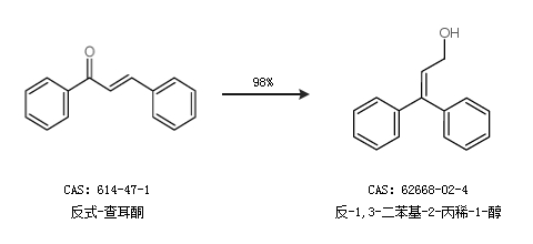 1.通过反式-查耳酮合成反-1,3-二苯基-2-丙稀-1-醇,收率约98%;