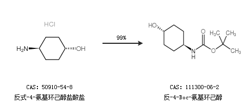 1.通过反式-4-氨基环己醇盐酸盐合成反-4-Boc-氨基环己醇,收率约99%;
