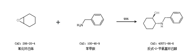 1.通过氧化环己烯和苯甲胺合成反式-2-苄氨基环己醇,收率约99%;