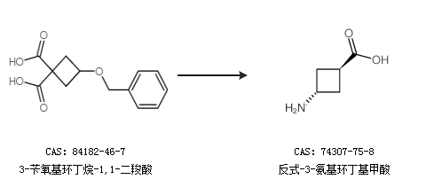 2.通过3-苄氧基环丁烷-1,1-二羧酸合成反式-3-氨基环丁基甲酸